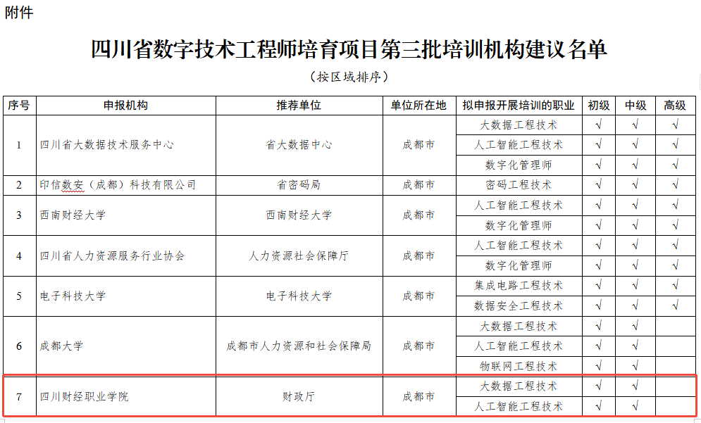 3月31日,四川省人力资源和社会保障厅发布公示,公布《四川省数字技术工程师培育项目第三批培训机构建议...【详情】02