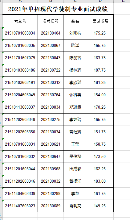 2021年单招现代学徒制专业面试成绩