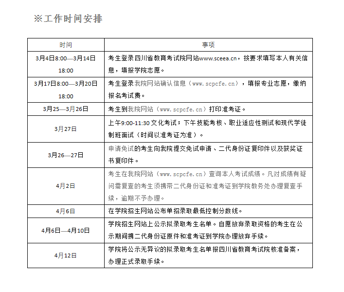 2021单招工作时间安排表