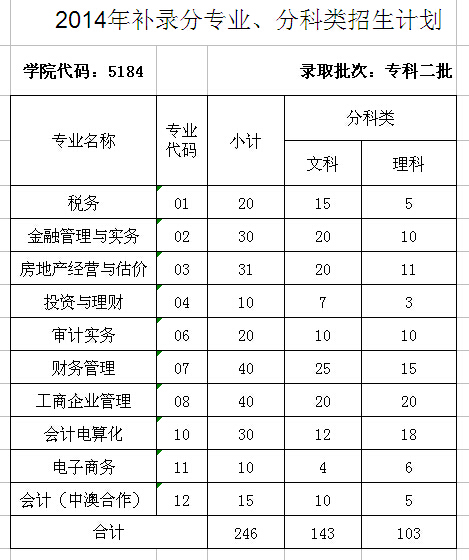 2014年补录分专业、分科类招生计划