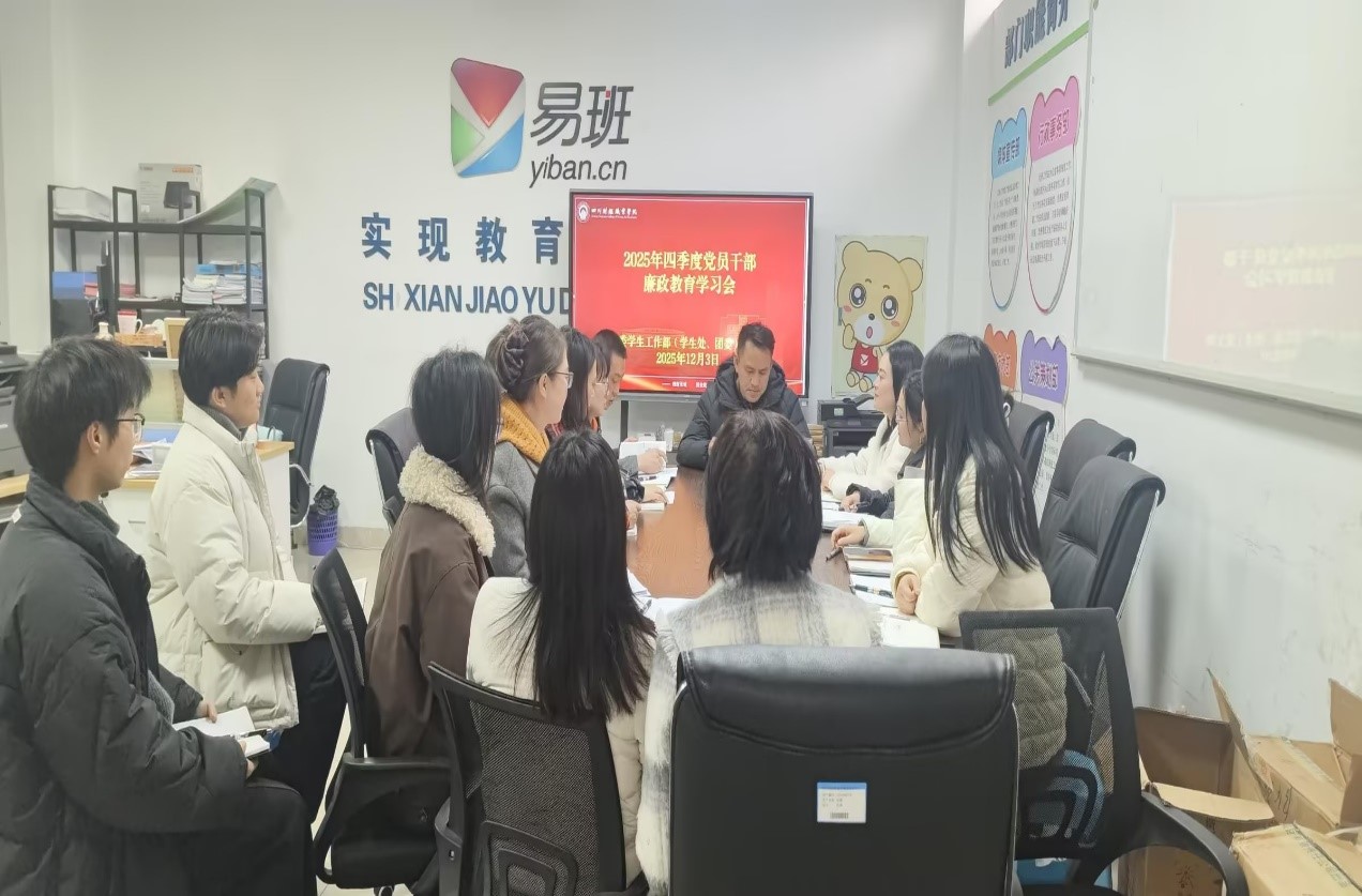 为深入贯彻全面从严治党要求,持续加强党员干部作风建设,切实筑牢拒腐防变思想防线,12 月 3 日上午,党委学生工作部(学生处、团委)党支部在易班办公室召开2025年四季度党员干部廉政教育学习会。会议由支部书记田刚成主持,支部全体党员参加学习,旨在以学正风、以廉立身,推动廉政教育与团学工作深度融合。