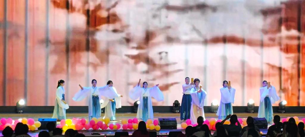 闭幕式演出以 “星火出燃,华韵生辉”“文心焕彩,国韵流芳”“百川异彩,共韵星河” 三大篇章,奏响青春活力与多元文化交融的乐章。跆拳道协会带来的《品势》表演,刚劲拳脚虎虎生风,一招一式尽显武道精神,点燃全场热情;健美操协会以《美丽的中国》为祖国献上热忱礼赞,队员们用充满活力的舞姿,让青春脉搏与家国情怀同频共振;索玛花协会的《千彩民族华裳录》惊艳亮相,民族服饰绚丽多彩,舞步流转间,五十六个民族的瑰丽文化如璀璨星河,在舞台上绽放出夺目光芒。