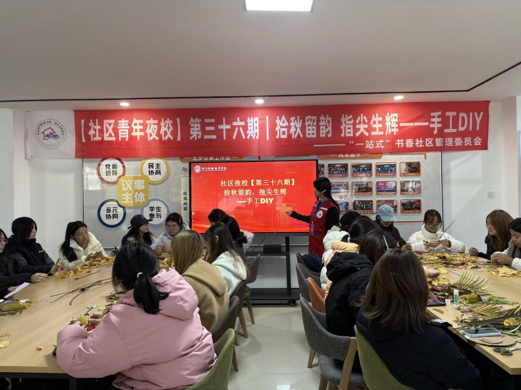 为丰富校园文化生活,引导学生在实践中感知自然之美,12月5日,“一站式”书香社区管理委员会在党群服务中心成功举办拾秋留韵,指尖生辉——手工DIY活动。活动吸引学生们踊跃参与,在秋叶与巧思的交织中,共赴一场充满诗意的手作之约。