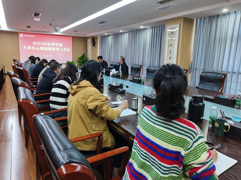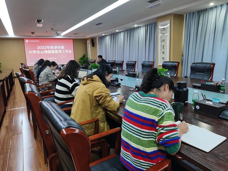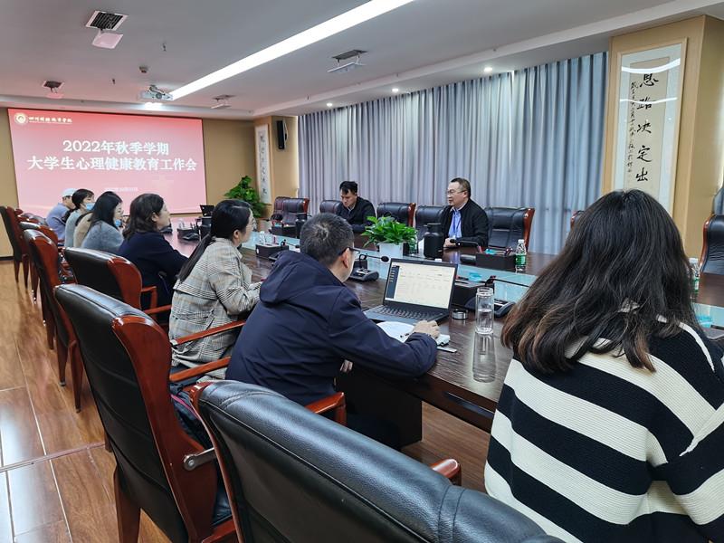 为认真贯彻落实习近平总书记关于安全的重要论述和来川视察重要指示精神,牢固树立以学生为中心的发展思想,进一步做深做实学生心理健康管理各项工作,维护学生生命健康安全和校园稳定。2022年10月31日,学校党委委员、副院长罗潇,学工部负责人、二级学院党总支书记、二级学院心理辅导站站长和学工部心理健康教育专职老师在明德楼913会议室召开了2022年秋季学期学生心理健康教育工作推进会。