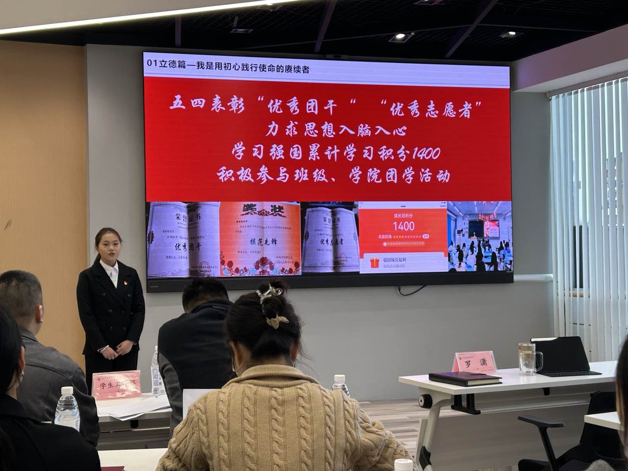 会议中,9名候选人依次上台进行现场展示,详细讲述了他们在校期间在道德风尚、学习能力、活动竞赛、技能创新、社会实践、公益贡献等方面取得的成绩。展示结束后,现场评审委员们对国家奖学金增补候选人进行了综合认定,最终确定了刘荏奕等7名同学为国家奖学金增补名额拟推荐人选。