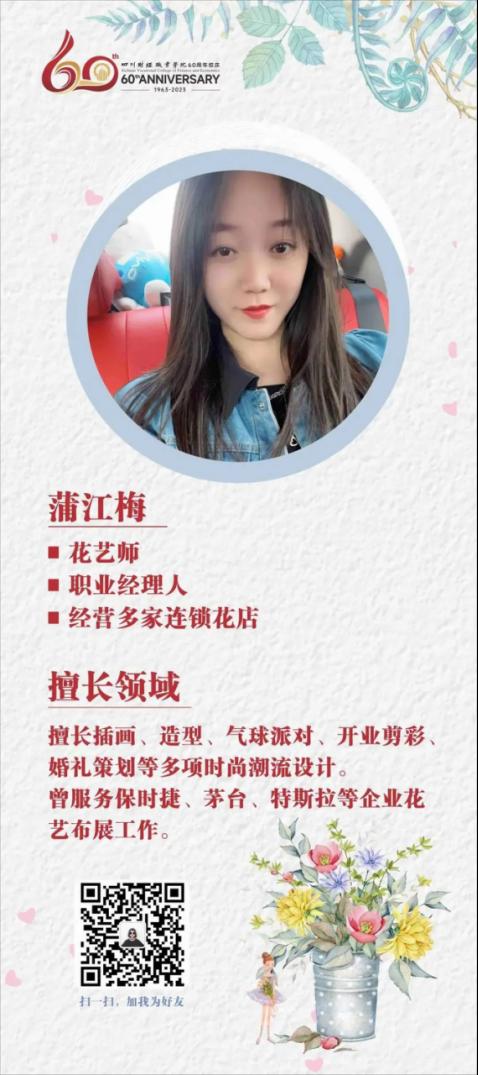 进一步丰富同学们多姿多彩的校园生活,让大家在劳逸结合中获得健康、全面的发展。5月26日下午18:00--19:00,社区夜校第六期特邀花艺师蒲江梅老师,为同学们开展了一堂精彩的插花教学课程。