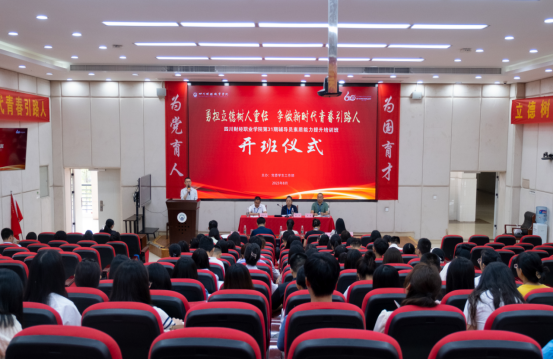 开班仪式上,学院党委委员、副院长罗潇带领与会人员重温“高校辅导员誓词”,并为第31期辅导员素质能力提升培训班授旗。