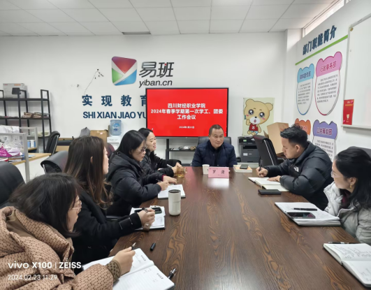 为扎实做好2024年春季学期开学各项准备工作,并全面安排部署新学期的工作任务,明确工作重点,2月23日上午,学院在学生工作部易班办公室召开春季学期第一次学工、团委工作会议。党委委员、副院长罗潇,学生工作部部长田刚成,学生工作部副部长、团委副书记高菁,学工部、团委全体成员参加会议。