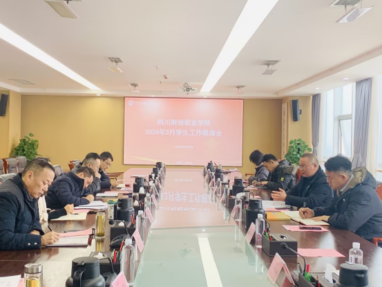 会上,各职能部门负责人依次对学生工作重点事项及近期工作进行了通报和工作沟通。随后学生工作部对辅导员队伍建设、学风建设、学生常规管理、学生心理健康教育等工作进行具体安排。会议要求全体学工人员要紧密围绕学院高质量发展目标,认真落实相关工作要求,切实增强做好学生工作的责任感、使命感、紧迫感,以更加昂扬的斗志、饱满的热情做好各项育人工作,为奋力谱写学院建设和高质量发展新篇章贡献川财学工力量。