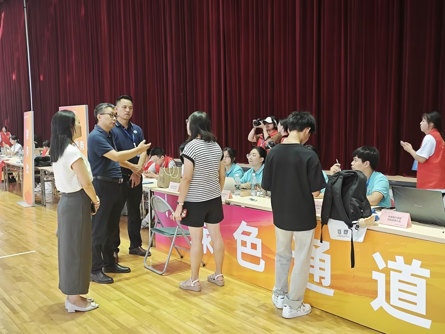 符院长一行高度重视绿色通道的开通情况,亲自来到现场视察指导工作,了解工作流程,与新生和家长亲切交流,解答他们的疑问。