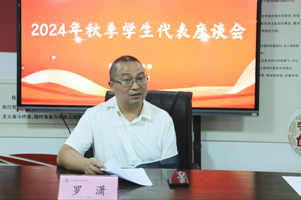 服务发展”的理念。9月10日晚上,我院在“一站式”书香社区召开2024年秋季学期学生代表座谈会。党委委员、副院长罗潇,学生工作部部长田刚成,副部长廖中强及22、23、24级学生代表30余人参加了本次座谈会。