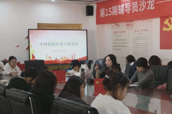 为进一步促进校园文化建设,加强师生沟通交流,提升社团育人成效,10月22日中午,我院学生工作部社团联合会在一站式学生社区党群服务中心召开以“共筑梦想,携手前行”为主题的十月座谈会。学生工作部副部长、团委书记高菁,社团指导老师徐嘉励,各社团负责人40余人参加了会议。