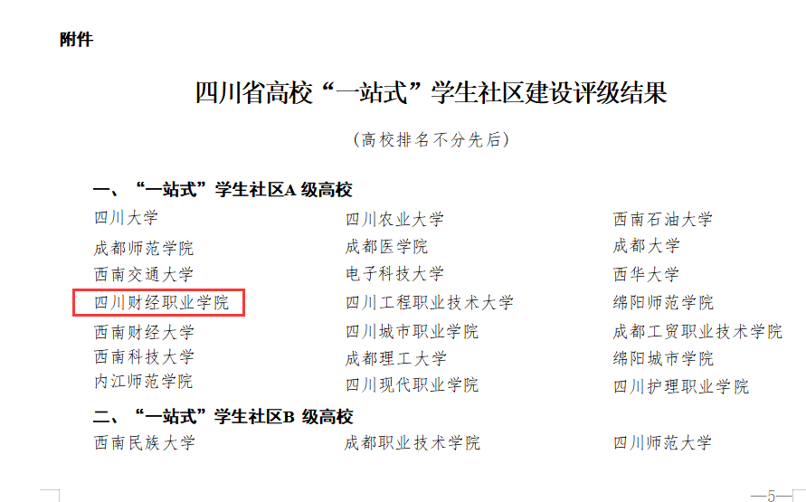 近日,四川省委教育工委开展了高校“一站式”学生社区建设评级工作,全省137所高校参与评级,经过激烈评审,我校凭借扎实的建设成果脱颖而出,获评全省“一站式”学生社区A级高校。