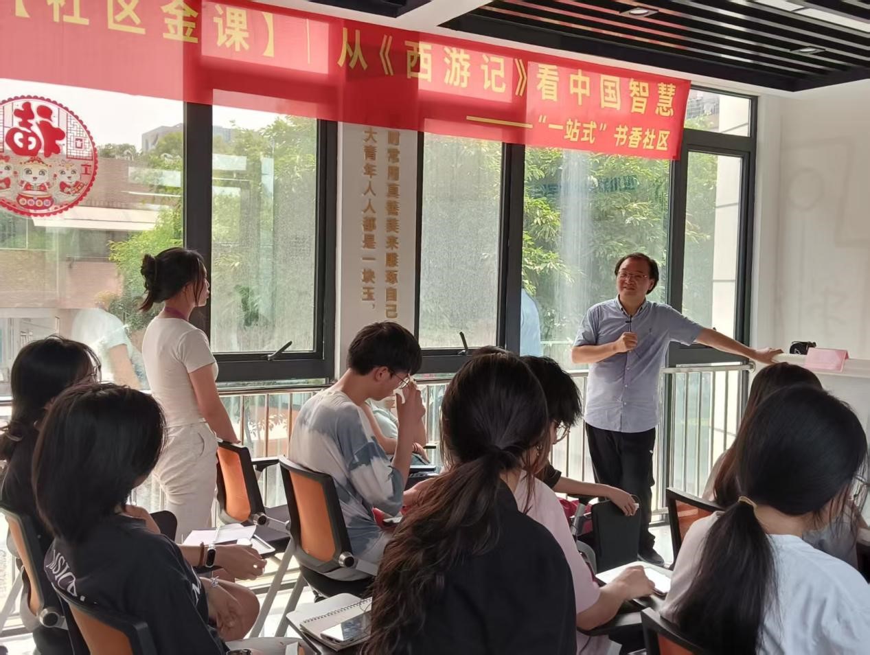 6 月 17 日下午,由“一站式”书香社区主办的“ 社区金课”在社区共享报告厅精彩开讲。党建与思政研究中心副主任、马克思主义学院张志博士受邀带来《从 <西游记> 看中国智慧》主题讲座,为现场观众呈现了一场融合经典解读与哲学思辨的文化盛宴。
