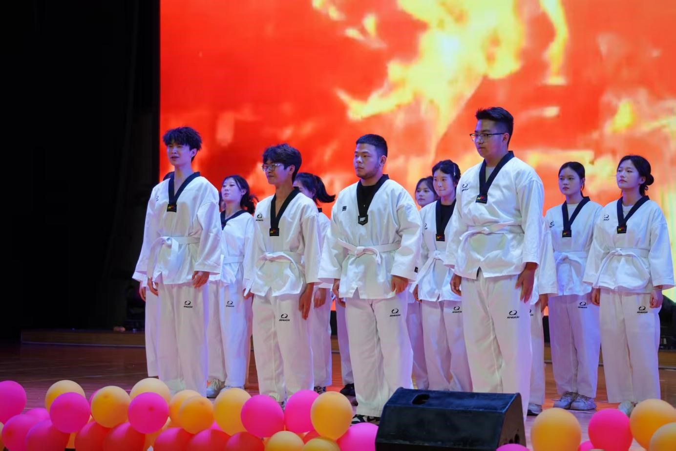 闭幕式演出以 星火出燃,华韵生辉”“文心焕彩,国韵流芳”“百川异彩,共韵星河 三大篇章,奏响青春活力与多元文化交融的乐章。跆拳道协会带来的《品势》表演,刚劲拳脚虎虎生风,一招一式尽显武道精神,点燃全场热情;健美操协会以《美丽的中国》为祖国献上热忱礼赞,队员们用充满活力的舞姿,让青春脉搏与家国情怀同频共振;索玛花协会的《千彩民族华裳录》惊艳亮相,民族服饰绚丽多彩,舞步流转间,五十六个民族的瑰丽文化如璀璨星河,在舞台上绽放出夺目光芒。