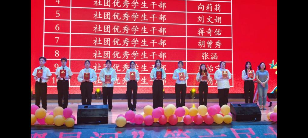 在表彰环节,现场领导为 五星级社团 颁发牌匾,并对 明星会长”“社团优秀学生骨干”“社团优秀学生干部”“社团积极分子 等表现突出的集体与个人进行表彰,以荣誉嘉奖他们在社团工作中的卓越贡献,激励更多师生积极投身社团建设。
