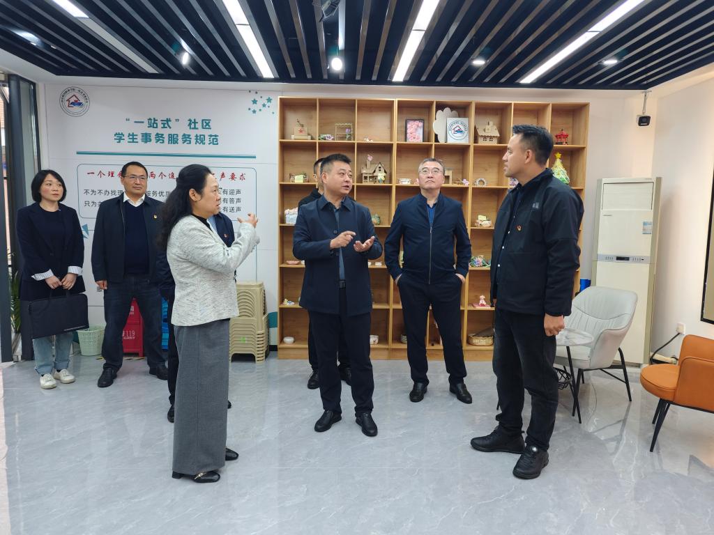 李大鹏一行详细听取学院关于社区建设推进情况、现有服务效能评估及未来发展规划的汇报,之后逐一参观学生事务中心、党群服务中心、心理咨询室、辅导员工作室及警务中心的运行现场。对学校目前“一站式”学生社区的规划、资源整合以及服务师生等方面给予充分肯定,为我校“一站式”学生社区建设指明了方向、明确了路径。学校将以此次指导为契机,持续深化社区建设改革,不断提升服务育人质量,切实增强学生的获得感、幸福感与安全感,打造新时代高校学生教育管理新模式。