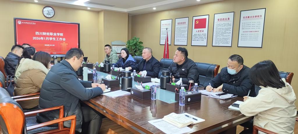 1月13日上午,学院在明德楼912会议室召开2026年1月学生工作会。学院党委委员、副院长罗潇,相关部门负责人,各二级学院党总支书记(副书记)参加会议。