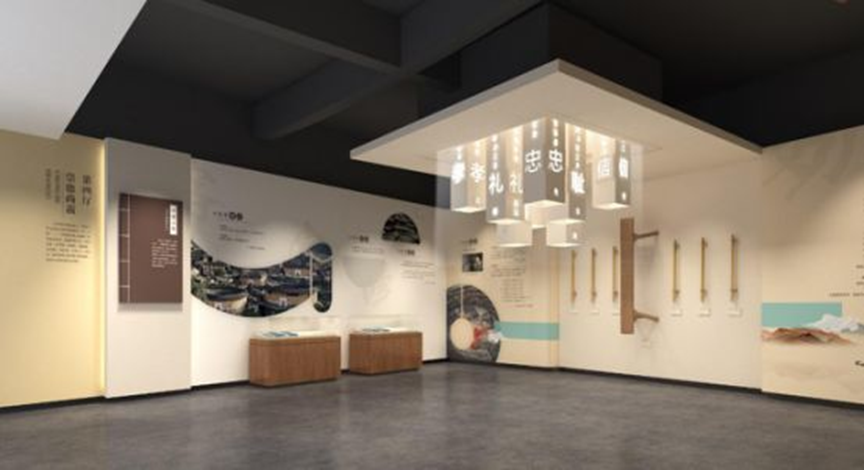 则运用楹联艺术通道、二维码互动墙、家风传承艺术装置,展现出客家民系在迁徙历史中形成的巍巍家风。