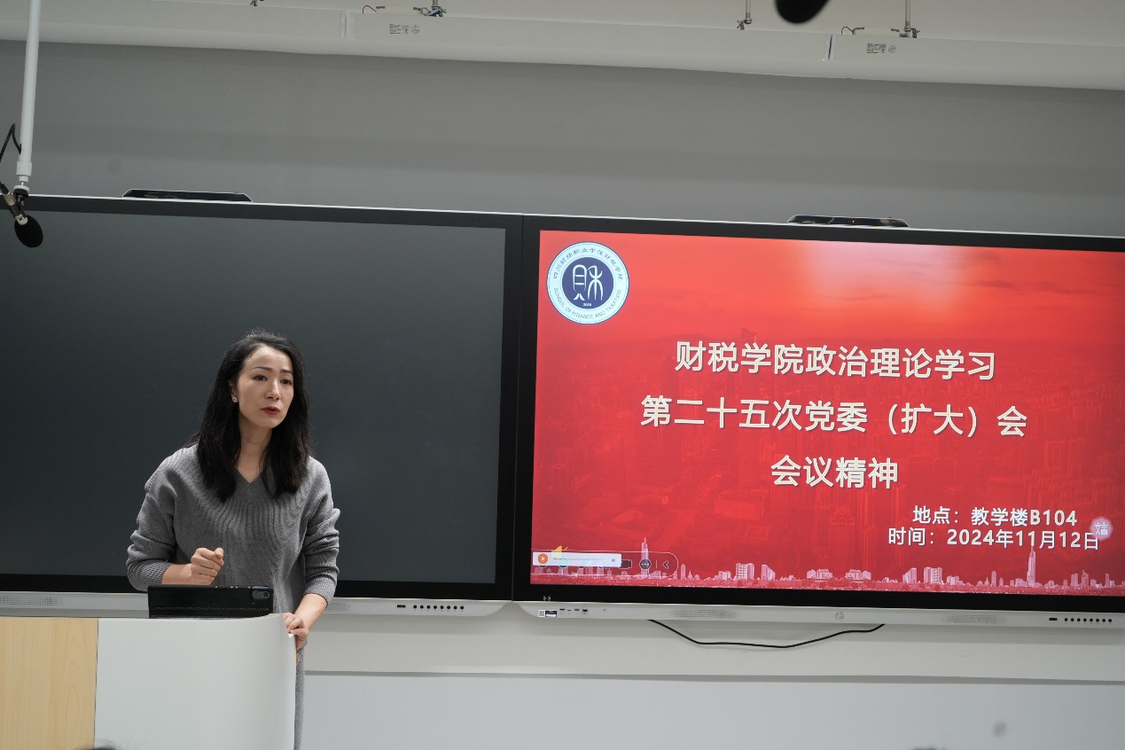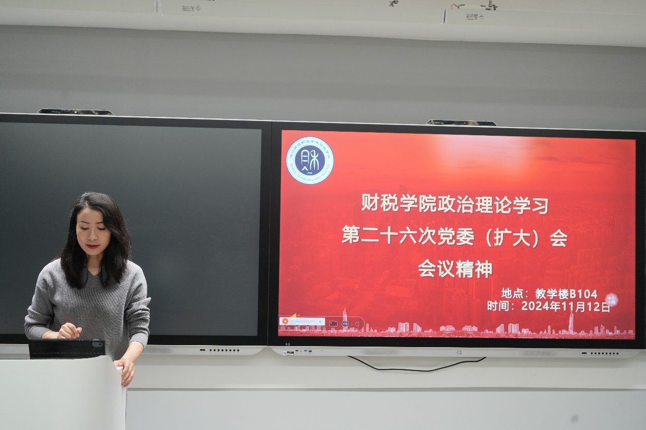 2024年11月12日于至诚楼104教室开展财税学院政治理论学习及教职工大会,此次大会由财税学院党总支书记陈露书记主讲,财税学院全体教师参会。