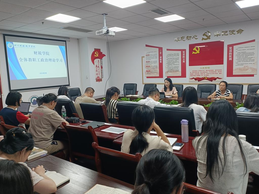 为进一步加强全体老师的政治理论素养,提升政治判断力、政治领悟力和政治执行力,2024年9月24日,财税学院于明德楼512会议室举行了“深化理论学习筑牢思想根基”暨第19次党委会专题会议学习传达。会议由财税学院党总支书记陈露主持,财税学院全体老师参加会议。