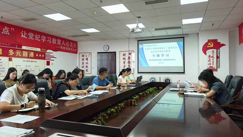 为进一步深入学习贯彻党的最新理论成果,不断提升全体老师的政治素养和业务能力,2024年7月12日,财税学院在512会议室开展了“深化理论学习筑牢思想根基”集体学习会。财税学院党总支书记陈露主持,学院全体老师参加。