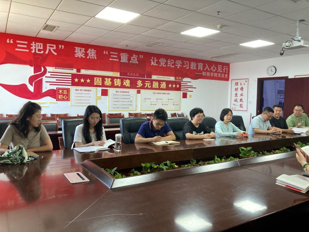 2024 年5月13日,财税学院政府采购教研室支部召开了党纪学习教育暨确定党员发展对象会议,会议由支部书记高淑芳主持,支部全体党员和入党积极分子出席。本次会议共包含两项议程:第一项议程为全体党员共同学习《中国共产党纪律处分条例》(以下简称《条例》);第二项议程为讨论并表决入党积极分子转发展对象事宜。