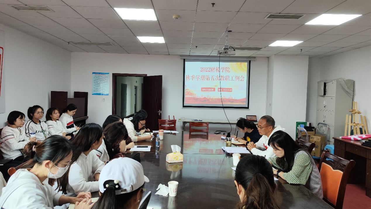2022年11月2日,在党的二十大闭幕之际,财税学院在512会议室顺利召开2022年秋季学期第五次教职工会议,学习习近平总书记对新时代中国共产党的历史使命、人民地位、人才现代化建设等主题的重要论述,持续加强师德师风建设,号召全体教职工脚踏实地、埋头苦干,在职业教育的事业上办人民满意的教育而努力奋斗。会议由党总支副书记陈露主持,院长祝刚做重要讲话,副院长罗艾发言,全体教职工参会。