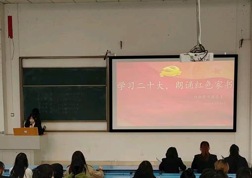 今天,中国共产党第二十次全国代表大会开幕。为学习宣传贯彻党的二十大精神,深入贯彻学习党的精神,增强理想信念,不忘初心,坚定不移地跟党走,财税学院于2022年10月16日上午9:30-10:00在至诚楼B113召开“学习二十大,红色家书颂党恩”主题活动。活动由21政府采购管理2班的谢明霞同学主持。财税学院团总支学生会成员、入党积极分子、各班班委干部参加活动。