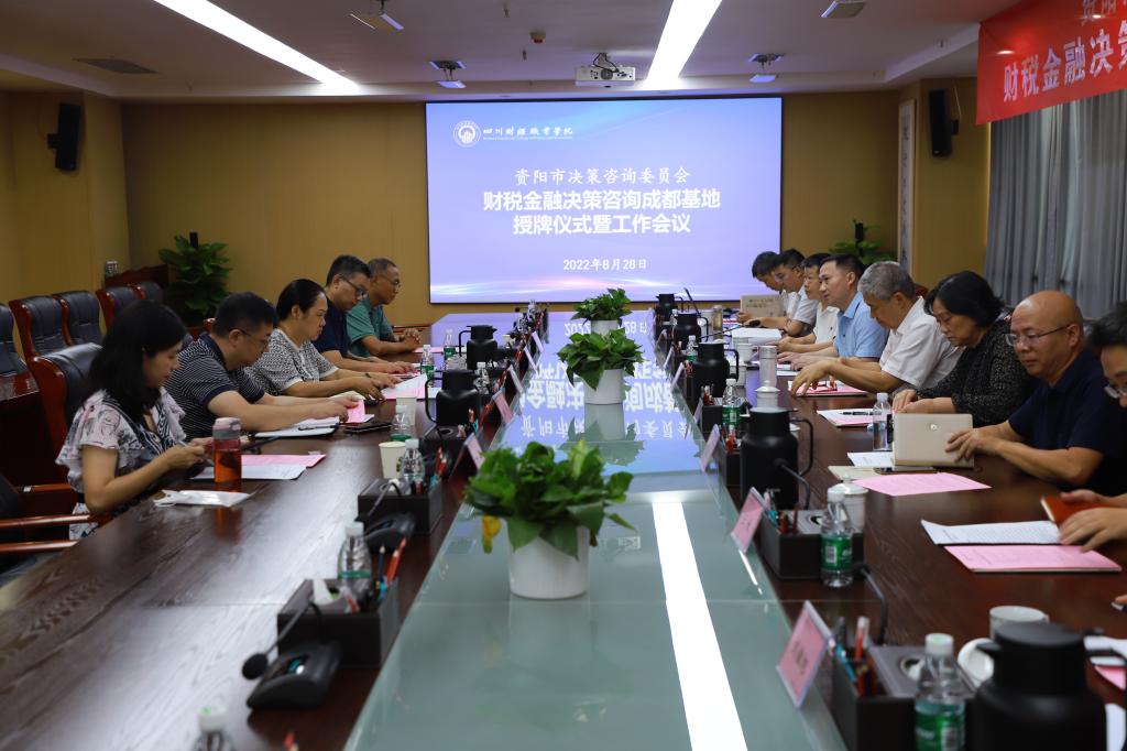 与会人员对资阳市决策咨询重点调研课题“关于优化资阳市创新发展财税金融政策的对策建议”进行研究,并就成都基地工作规划和下一步工作思路进行了商讨。