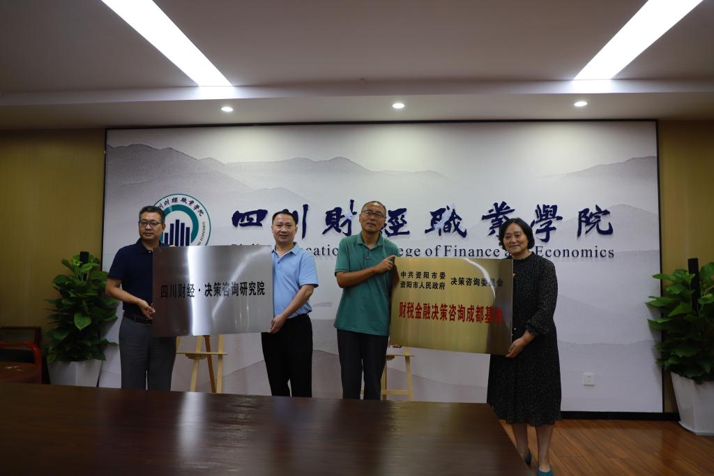 8月28日上午,中共资阳市委、资阳市人民政府决策咨询委员会与学院共建的财税金融决策咨询成都基地授牌仪式暨工作会议在明德楼913会议室举行。中共资阳市委、资阳市人民政府决策咨询委员会主任吴华,副主任刘仲玉,学院党委书记张华,学院副院长(主持行政工作)符刚,学院党委副书记、纪委书记敬华,西南财经大学教授周克清等出席了会议。本次授牌仪式暨工作会议由市决咨委财税金融组组长、省注册会计师协会副会长刘胜良主持。