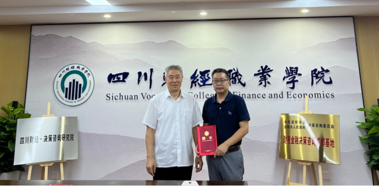 授牌仪式结束后,财税金融决策咨询成都基地相关人员召开工作会议。主持人刘胜良宣读增补资阳市决策咨询委员会委员的决定,资阳市决策咨询委员会主任吴华为新晋委员代表颁发聘书。