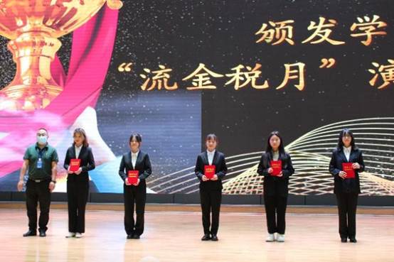 “流金税月”主题演讲比赛第一名的李思琪、学院职业生涯规划大赛二等奖获得者周鹏分别进行演讲,充分展示了当代青年的朝气蓬勃、奋发向上的青春风貌。