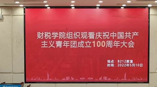 财税学院响应上级号召,积极组织、广泛动员团员青年,采取线上与线下相结合的方式,全体师生分别于明德楼512和至诚楼B212观看直播盛况,深入学习习近平总书记在中国共产主义青年团成立100周年大会上的重要讲话精神。
