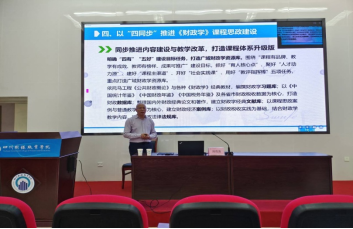 作为国家线上一流课程负责人和国家级课程思政教学名师,周克清教授以国家级课程思政示范课程《财政学》为例,从为什么开展课程思政、如何开展课程思政入手,深入讲解了以“四同步”推进《财政学》课程思政的建设方法,即同步推进课程建设与团队建设,打造新型基层教学组织;同步推进内容建设和教学改革,打造课程体系升级版;同步推进教师成长与学生成长,打造新型师生关系;同步推进课程建设与实践育人,打造校内外课程资源体系。