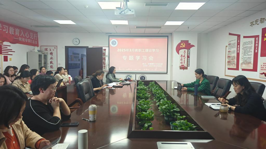 为进一步提升全体教职工的政治理论素养,不断增强政治判断力、政治领悟力和政治执行力,4月8日,财税学院于明德楼512会议室召开教职工理论学习专题会议,深入学习《2025年3月教职工理论学习月刊》。会议由学院党总支书记陈露主持,全体教职工参加。