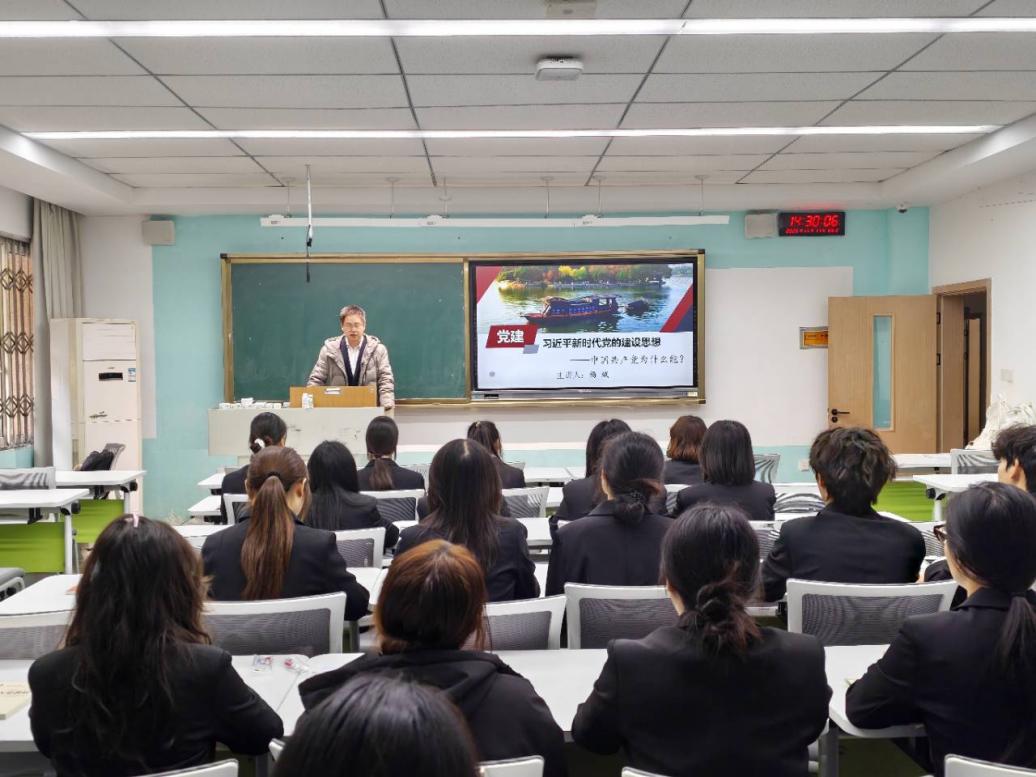 杨斌副教授以扎实的理论功底、丰富的实践经验为支撑,围绕党的创新理论核心要义与党性修养提升实践路径两大主题展开授课。授课过程中,他结合自身学术研究成果与行业典型案例,对党的最新理论政策进行体系化解读,逻辑清晰、阐释透彻;同时分享了在课题研究、教学实践中的感悟体会,强调入党积极分子必须坚定理想信念,将理论学习与专业钻研、校园服务、实践锻炼等具体场景深度结合,做到学思用贯通、知信行统一。课堂上,全体学员专注聆听、详细记录,围绕授课重点主动与主讲人交流探讨,现场学习氛围严肃浓厚、互动有序。