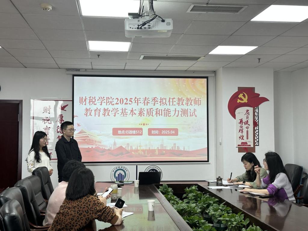 为评估新教师的教学能力,确保教师队伍质量,为学院教学质量提升奠定基础。2025年4月10日,财税学院于明德楼512教室组织开展了2025年春季拟任教教师教育教学基本素质和能力测试。财税学院陈露书记、罗艾副院长、杨晶老师、朱丹老师担任评委,对王心茹、龚一伦两位新教师进行现场打分与点评。