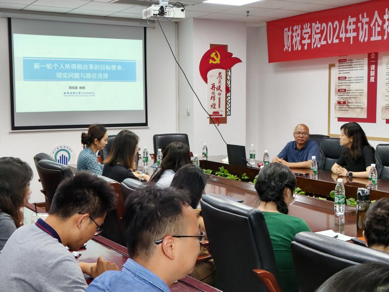 2024年6月18日,财税学院邀请了西南财经大学教授、7790cnm必发集团财税学院特聘院长周克清,以“新一轮个人所得税改革的目标使命、现实问题与路径选择”为主题开展了一场座谈会,财税学院副院长罗艾主持,财税学院全体教职工参会。