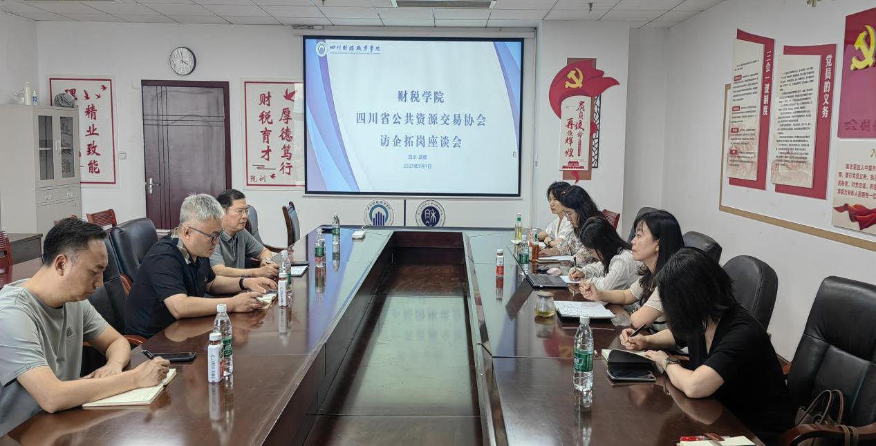 2025年9月1日下午2:10,四川省公共资源交易协会会长佟巍,省公共资源交易协会党支部书记、副会长陈卫东,执行副秘书长尹羿博,与财税学院副院长罗艾及政府采购管理教研室全体老师在512会议室开展座谈会,本次会议围绕双方合作的核心议题展开了深入的交流与讨论。