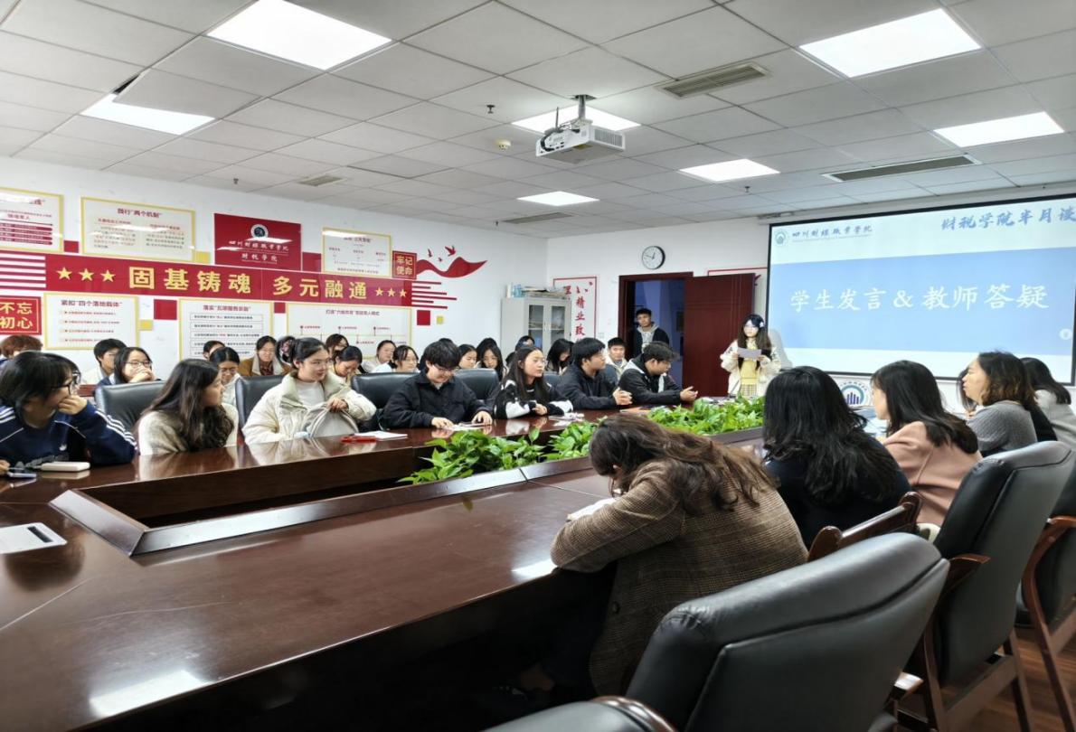 为精准把握学生学习动态,破解教学过程中的难点,进一步提高教育教学质量,11月4日,财税学院于明德楼512会议室召开学情分析座谈会。财税学院副院长罗艾、财政支出绩效管理教研室主任陈翠、财税大数据应用教研室主任蒋莉蘋、政府采购管理教研室朱丹老师等各专业教研室老师代表出席会议。来自财税学院不同年级、不同专业的40余名学生代表受邀参加。