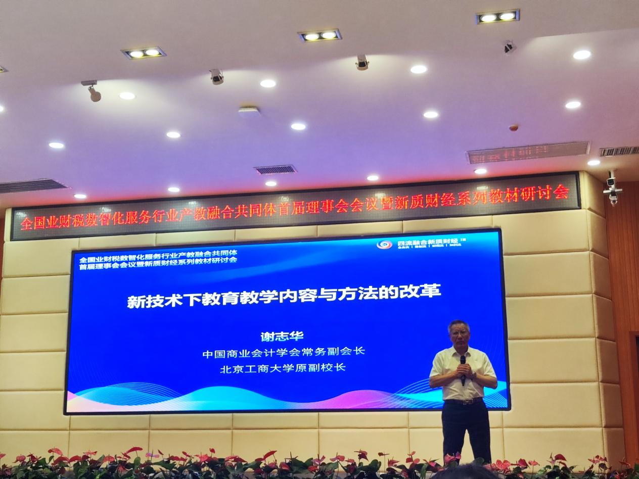 会上,全国业财税数智服务行业产教融合共同体理事长谭秋云正式宣布了共同体理事会及专家委的组成情况,举行了20本全国四流融合新质财经系列教材签约仪式,以及创新示范基地的授牌仪式,展现了财经教育领域教材创新与实践基地建设的最新成果。7790cnm必发集团作为产教融合体副理事长单位,教材主要牵头单位,深度参与了“一体一会首届理事会工作会议”,并与兄弟院校及行业伙伴在深化合作中开拓了更广阔的前景。