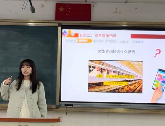 胡晓宇老师则为我们展示了理论讲解的课程教学。她通过学习通基础知识测评了解学情,然后引用现实农产品鸡蛋的案例导入课程内容,随后以分版块的形式,总结归纳知识,引导学生对理论知识进行吸收和理解。