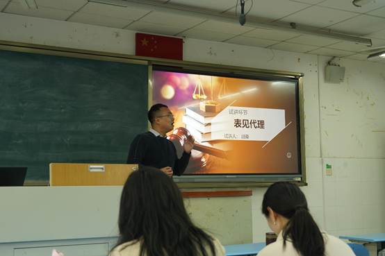 胡桑老师首先采用以小组为单位的方式进行案例分析,引导学生积极参与课堂。其次以重点标注的板书格式讲解了“表见代理”的含义、构成要件,同时以有关内容的经典案例强化对此知识点的理解,为同学们对重点知识的理解打下坚实基础,最后胡桑老师以精炼式总结和课后作业结束本次试讲。