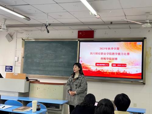 为进一步提高财税学院全体教师的教学技能,引领教师专业发展,搭建教师专业成长平台,促进教育教学质量的提高,财税学院于20231212日下午3:30分在教学楼C212举办2023年秋季教师教学能力大赛初赛。比赛由财税学院副院长罗艾主持,财税学院院长祝刚、财税学院副院长罗艾、财税学院团总支副书记陈露、实习实训教研室主任杨晶、财税大数据运用教研室主任蒋莉蘋、周海燕副教授、陈希副教授担任比赛评委,财税学院全体专兼职教师参加。