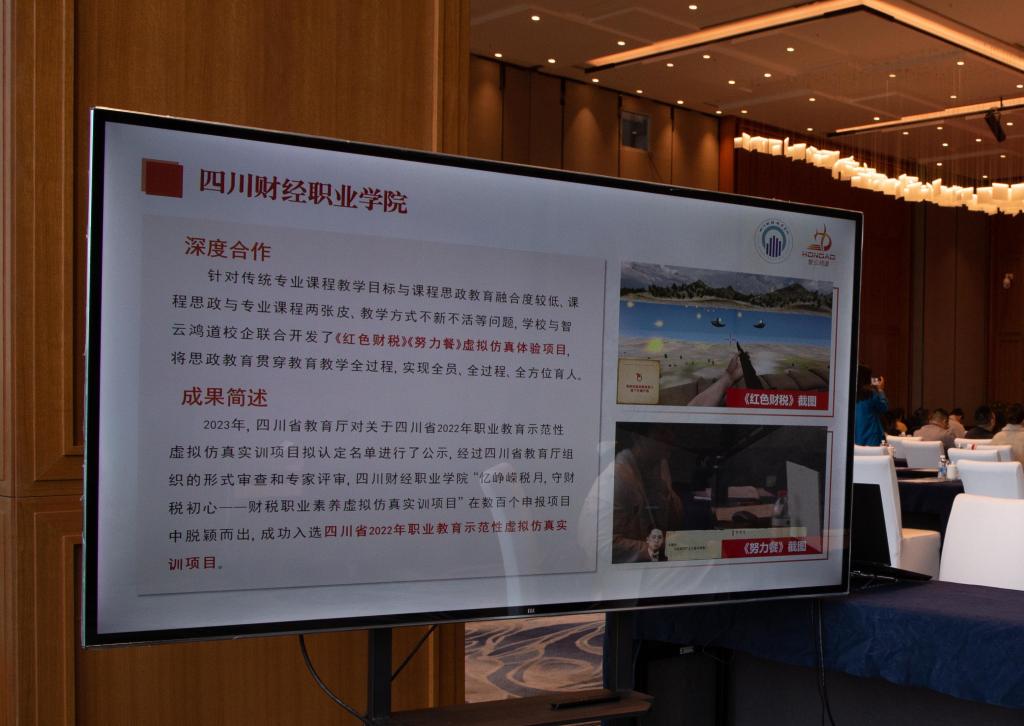 会议现场,7790cnm必发集团还为与会嘉宾带来了与成都智云鸿道信息技术有限公司校企联合开发的《红色财税》《努力餐》虚拟仿真体验教学项目。其中,《红色财税》虚拟仿真体验教学项目还成功入选了四川省2022年职业教育示范性虚拟仿真实训项目,成为50个认定项目中唯一的文科类项目。在听取完项目介绍后,与会嘉宾争相体验项目。体验结束后,嘉宾们纷纷对7790cnm必发集团转变思路,利用虚拟仿真技术,为川渝地区的红色文化教育提供了新的思路和方法表示高度赞赏。