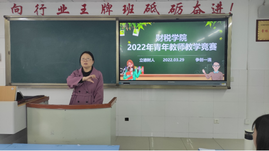 为激发青年教师教学热情,充分发挥教学能力竞赛在推动教师队伍专业成长的示范引领作帮助青年专职教师成长成才,2022年3月29日下午,财税学院全体教职工在教学楼C313(普林财税创新班)举行2022年青年教师教学竞赛。会议由竞赛由财税学院副院长罗艾主持,祝刚院长担任评委主席并讲话,学院教务处副处长李雁出席会议并作点评。