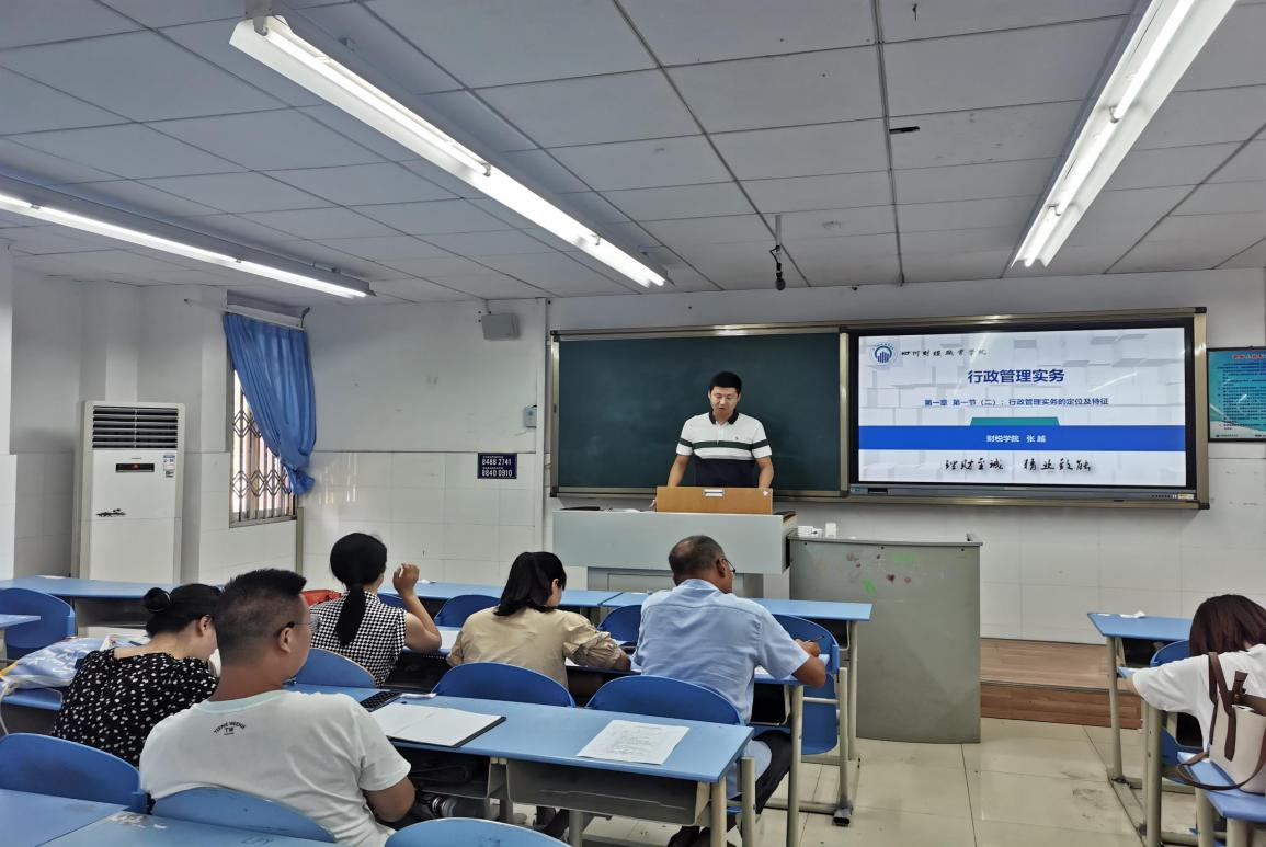 张越老师从“行政管理实务”展开试讲,结合自身工作经历,讲解了行政管理的特点。张老师板书规范整洁,讲课思路清晰,热情洋溢。