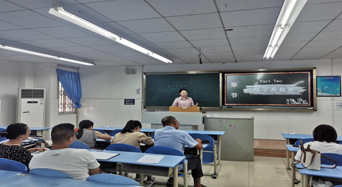 卢颖老师试讲的内容是“电子招投标”。卢老师一边讲解一边板书,通过引入生活中常见的案例帮助理解新知识点,讲解深入浅出,教学思维敏捷。