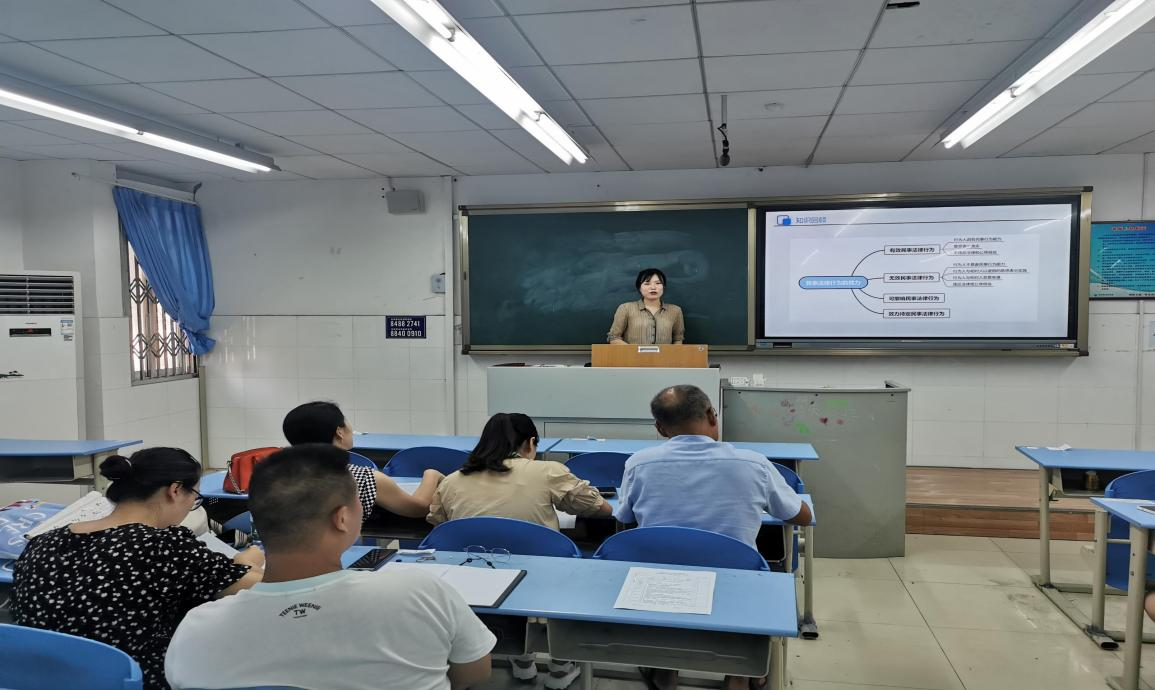段鑫艺老师以“可撤销的民事行为”为主题进行试讲,通过课前回顾、课中引入、课后总结展现了完整的上课流程,重难点把握较好,教风成熟自然,激情四溢。